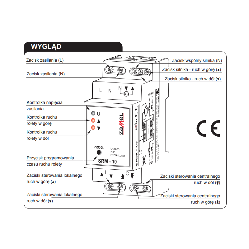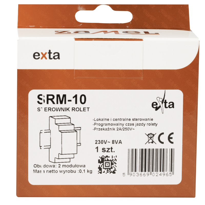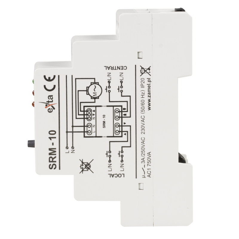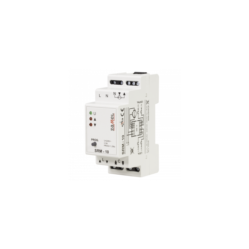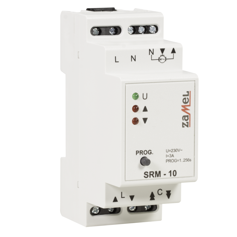 Sterownik rolety SRM-10 służy do zamykania oraz otwierania rolety okiennej napędzanej silnikiem prądu zmiennego. Sterowanie odbywa się za pomocą przycisków jednobiegunowych. Sterownik wyposażony jest w wejścia sterowania lokalnego oraz centralnego. Wszystkie wejścia sterujące mogą być wyzwalane z przewodu fazowego (L) lub neutralnego (N). Użytkownik ma możliwość zaprogramowania czasu ruchu rolety w granicach od 1 s do 256 s.