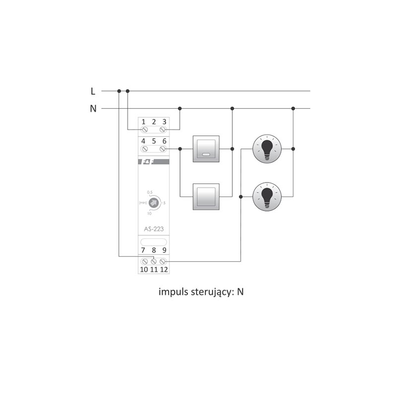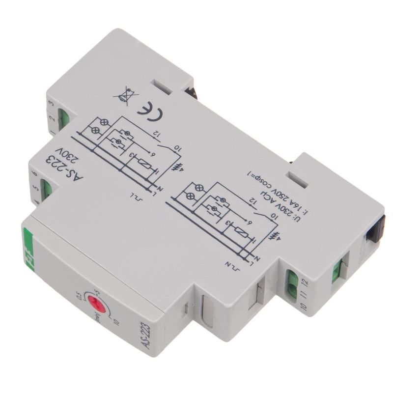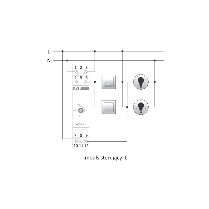 Załączony wyłącznikiem chwilowym (dzwonkowym) automat schodowy podtrzymuje oświetlenie przez czas ustawiony pokrętłem. Po upływie nastawionego czasu automat wyłączy oświetlenie samoczynnie. Po wyłączeniu oświetlenia możemy je załączyć ponownie.