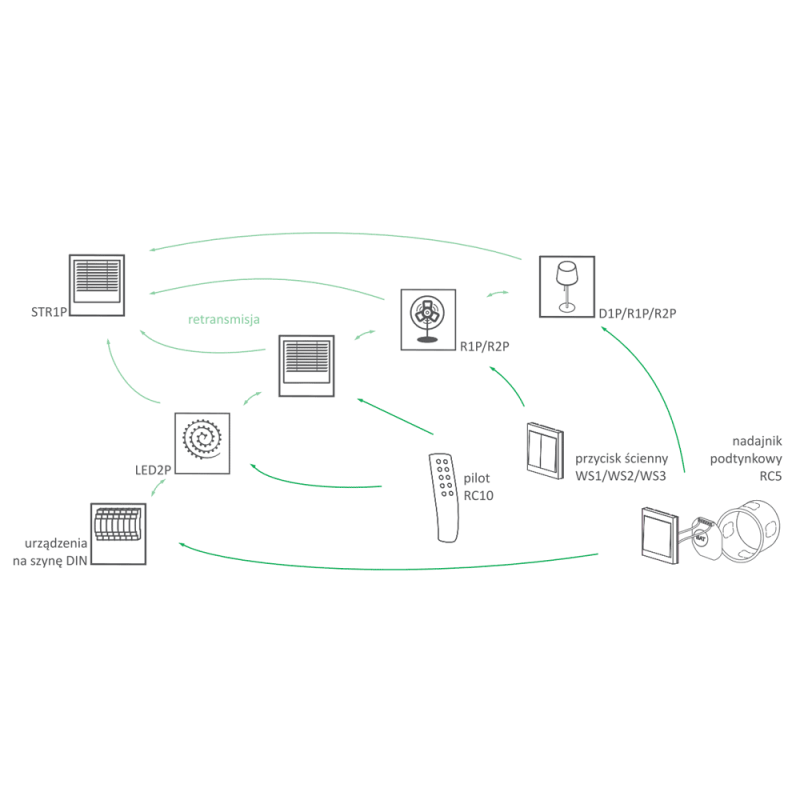 * Możliwość sterowania dowolną ilością odbiorników;