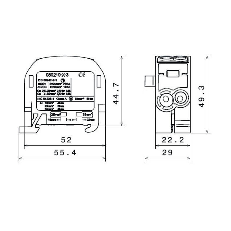 Prąd znamionowy202 A (2 x 25 mm²) / 125 A (1 x 35 mm²)