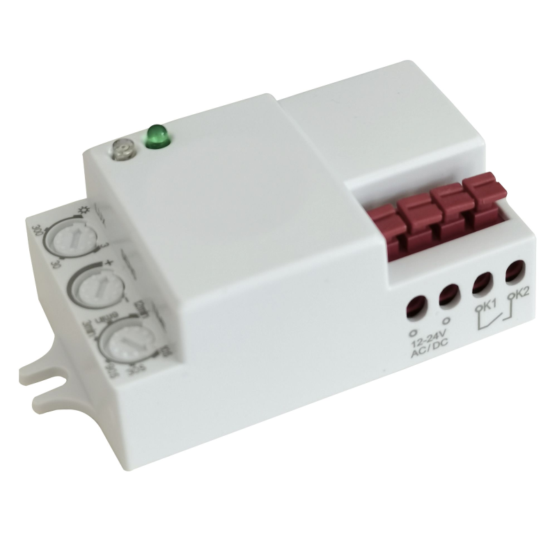 Czujnik mikrofalowy emituje i odbiera fale elektromagnetyczne wysokiej częstotliwości 5,8 Ghz. Czujnik wykrywa zmiany w odbiciu fal spowodowane przemieszczeniem się obiektu w obszarze detekcji. Czujnik wykrywa ruch obiektu „do” i „od” czujnika. Ruch w polu detekcji powoduje automatyczne załączenie oświetlenia. Od momentu załączenia ciągły ruch powoduje trwałe załączenie tego oświetlenia. Dopiero brak ruchu w polu detekcji wyzwala czas podtrzymania oświetlenia. Ponowny ruch w polu detekcji i jego zanik w trakcie odmierzania czasu wyzwoli czas podtrzymania od początku. Charakter działania pozwala wykorzystać urządzenie jako czujnik obecności. Po nastawionym czasie oświetlenie zostanie wyłączone automatycznie. Czujnik ruchu wyposażony jest w nastawny automat zmierzchowy, uniemożliwiający załączenie sterowanego oświetlenia w ciągu dnia.
