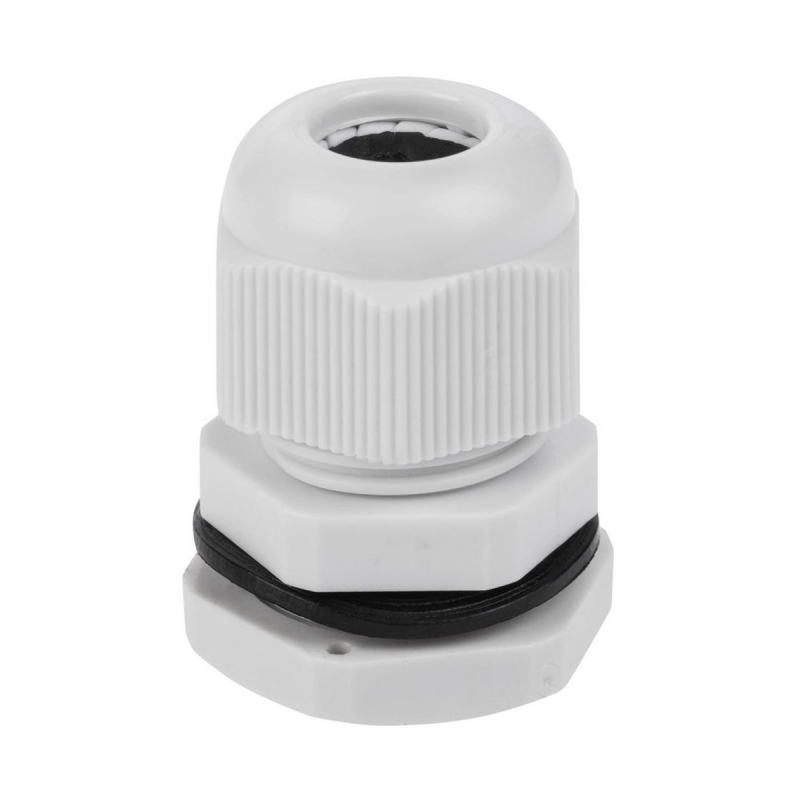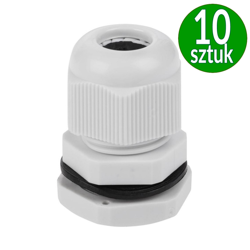 Dławik kablowy służy do zabezpieczenia okablowania przechodzącego przez urządzenia elektryczne. Konstrukcja dławika zapobiega skręcaniu przewodów i ich wyrwaniu. Tworzywo z którego wykonano wyrób jest trudnopalne. Cena za zestaw 10 sztuk.