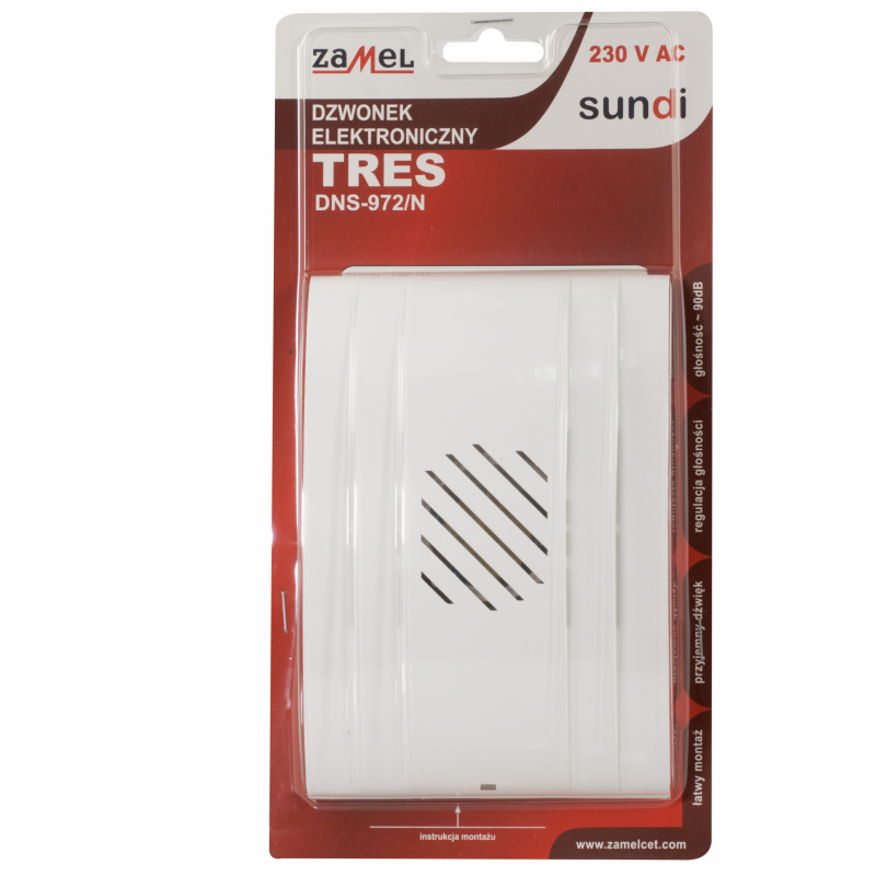 ZAMEL SUNDI DZWONEK TRES TRÓJTONOWY 230V BIAŁY TYP: DNS-972/N-BIA