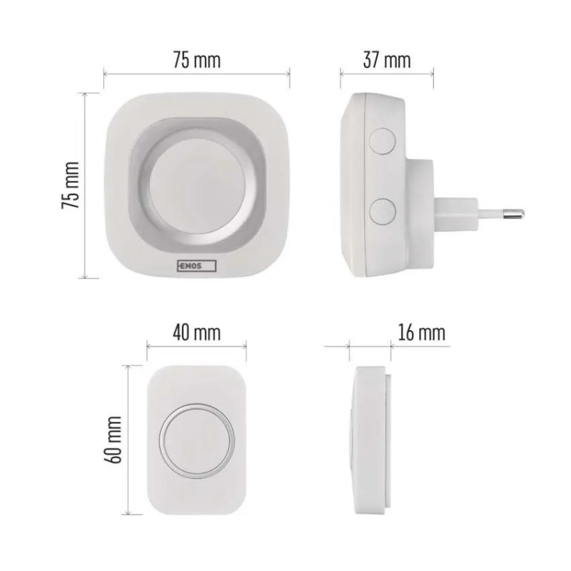 • Path: > > > EMOS DZWONEK BEZPRZEWODOWY DO GNIAZDKA PRZYCISK NA BATERIĘ BIAŁY P5733W