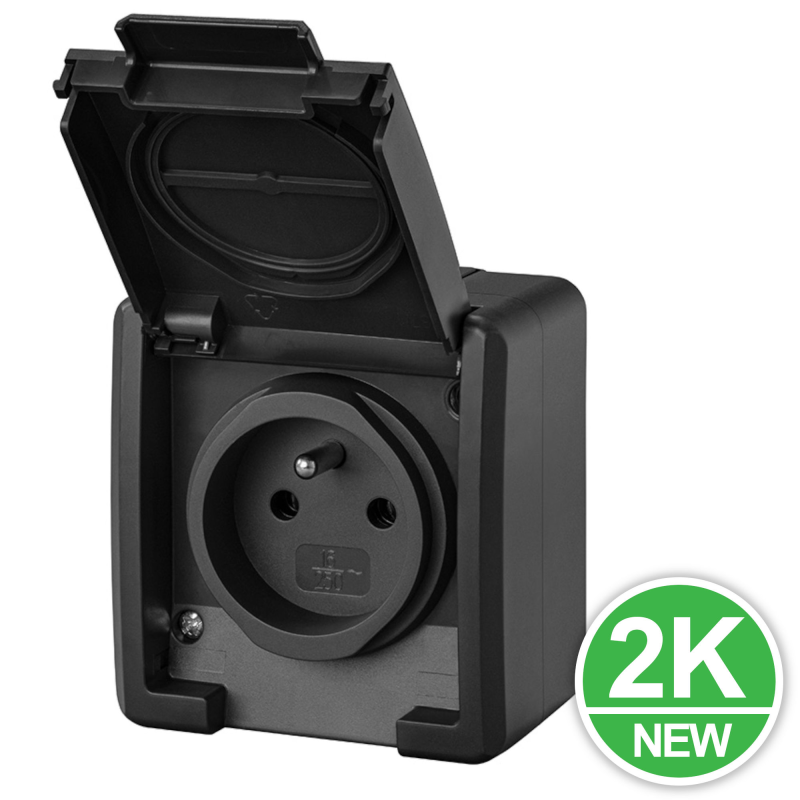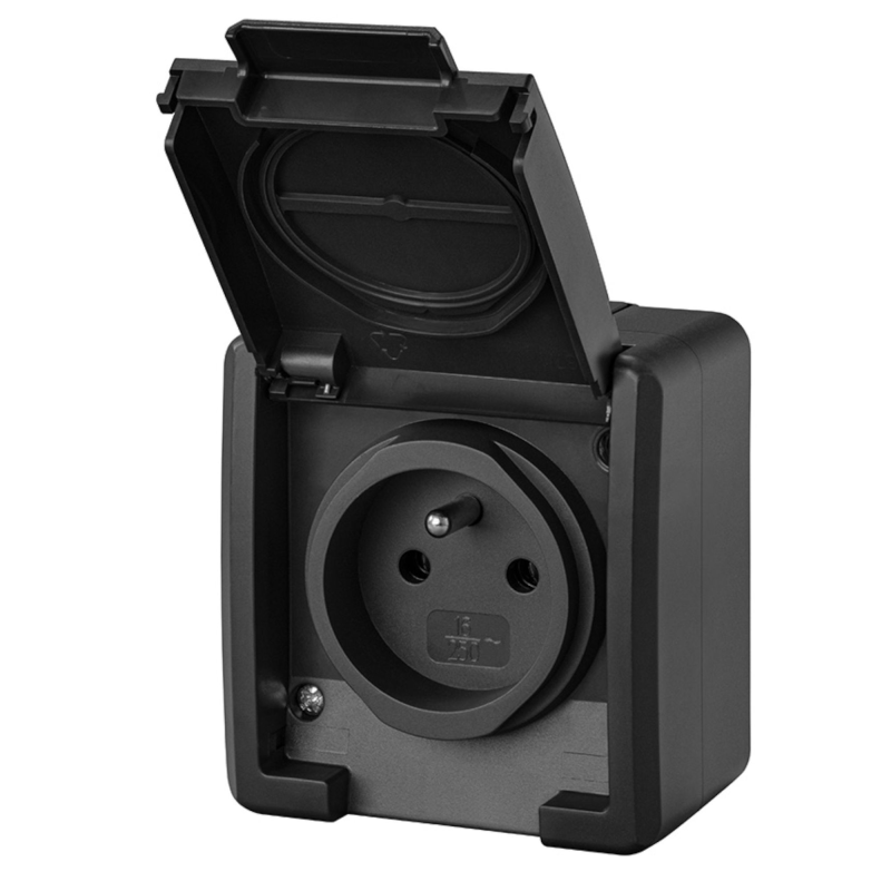 • Path: > > > AQUANT 2K Gniazdo pojedyncze z klapką Z/U natynkowe IP55 antracyt 5041-17