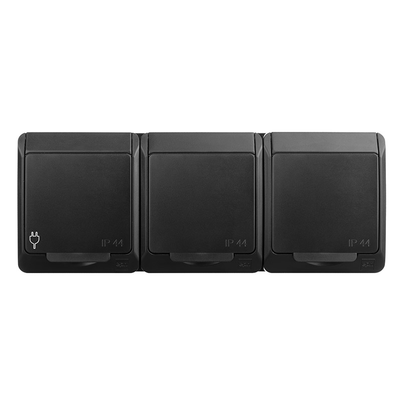 Elektro-Plast HERMES Gniazdo potrójne z klapką czarną Z/U natynkowe IP44 czarne 0323-09