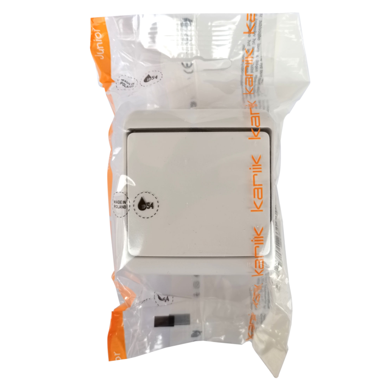 Produkt polski uznanej firmy Karlik Elektrotechnik. Produkty  serii  JUNIOR  to  zgrabna, kompaktowa  forma  o  niewielkich  rozmiarach.  Osprzęt  przeznaczony jest  do instalacji  natynkowej  na  zewnątrz  lub  w  pomieszczeniach  wilgotnych  np.  garażach  piwnicach,  pomieszczeniach gospodarczych z dostępem do wody  itp.