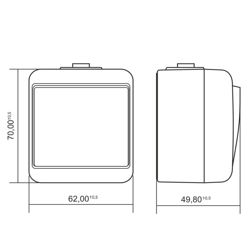 Wymiary (szer. × wys. × gł.)62×70×49,8 mm (±0,5 mm)
