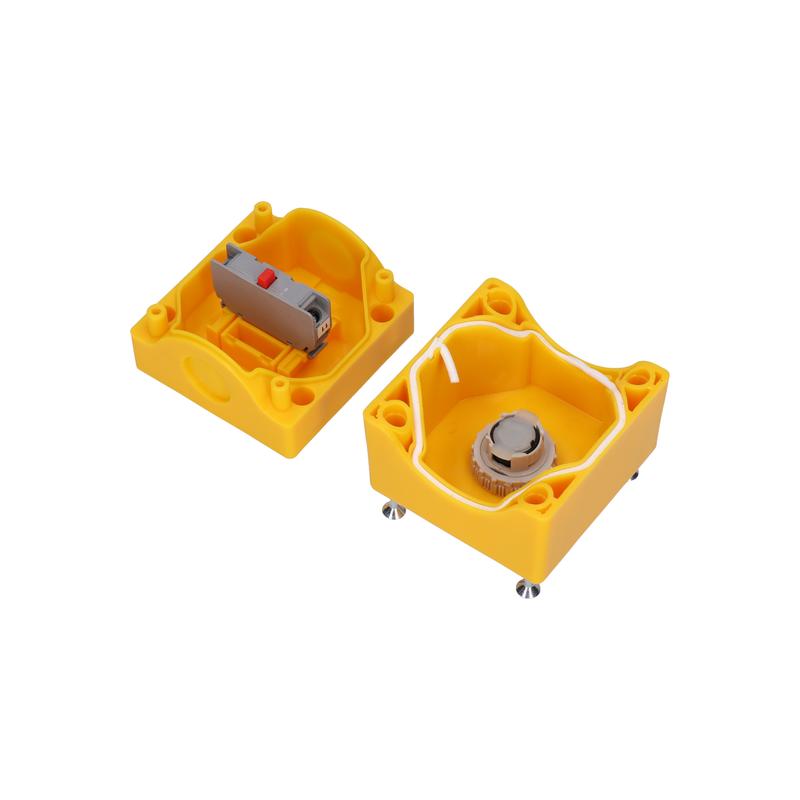 Kaseta żółta. Przycisk z guzikiem grzybkowym bezpieczeństwa ryglującym się samoczynnie po naciśnięciu. Odryglowanie poprzez przekręcenie grzybka w lewą stronę o kąt 90 stopnia.
