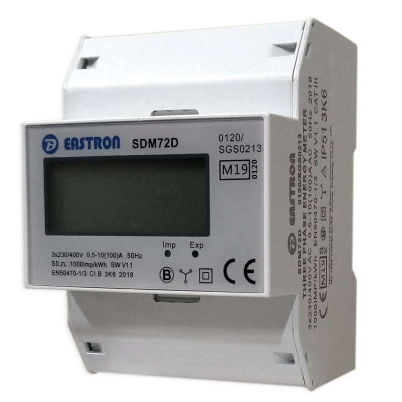 Licznik energii elektrycznej SDM72D (MID) służy do wskazań pobieranej energii elektrycznej prądu przemiennego trójfazową z dokładnością w klasie 1/B. Licznik jest zgodny z Unijną Dyrektywą 2004/22/WE, nazywaną dyrektywą MID – Measuring Instrument Directive (pol.: dyrektywa dotycząca urządzeń pomiarowych) z dnia 31 marca 2004 roku. Urządzenie mierzy ilość energii czynnej (kWh) za pomocą wyjścia impulsowego.