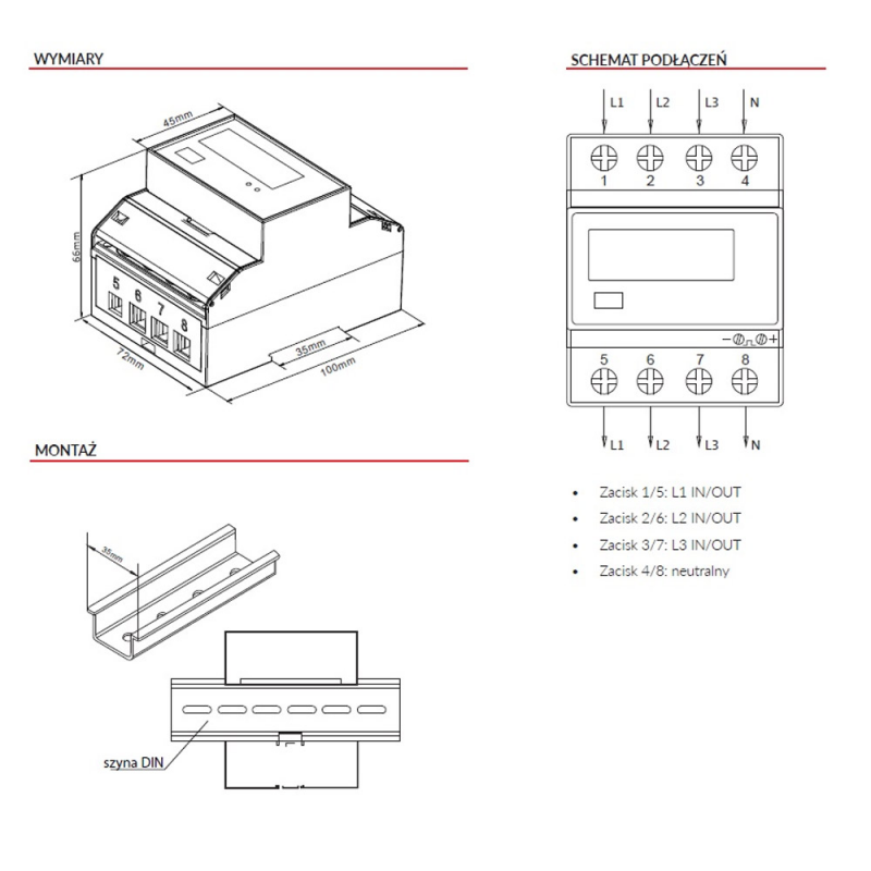 Licznik energii elektrycznej SDM72D (MID) służy do wskazań pobieranej energii elektrycznej prądu przemiennego trójfazową z dokładnością w klasie 1/B. Licznik jest zgodny z Unijną Dyrektywą 2004/22/WE, nazywaną dyrektywą MID – Measuring Instrument Directive (pol.: dyrektywa dotycząca urządzeń pomiarowych) z dnia 31 marca 2004 roku. Urządzenie mierzy ilość energii czynnej (kWh) za pomocą wyjścia impulsowego.