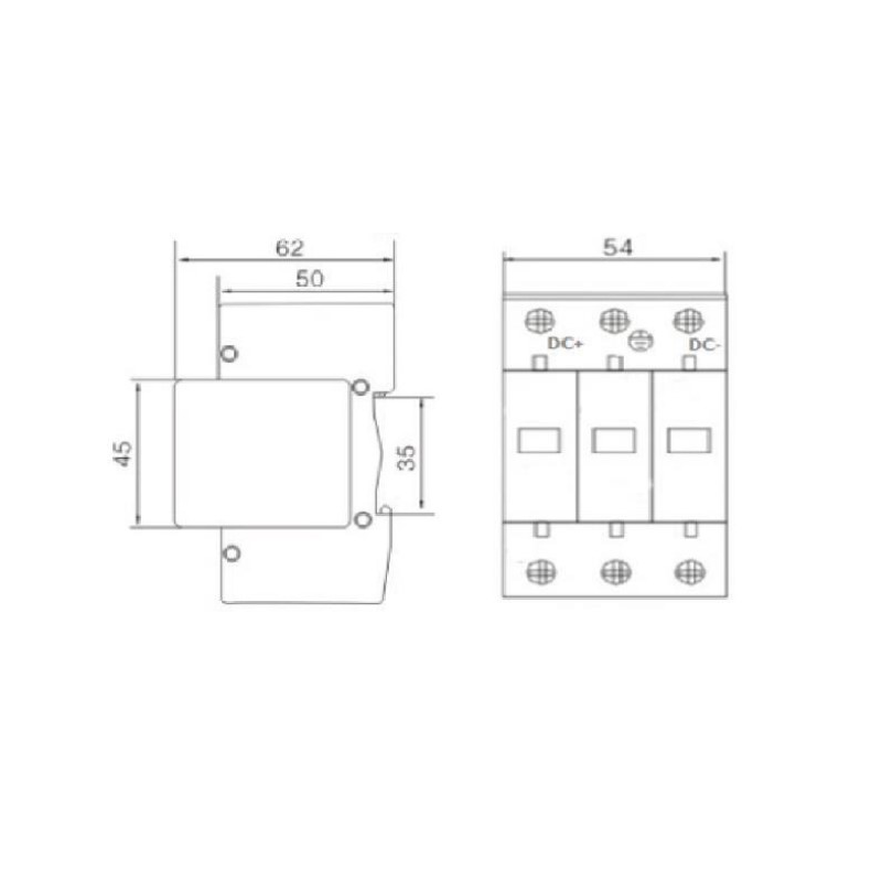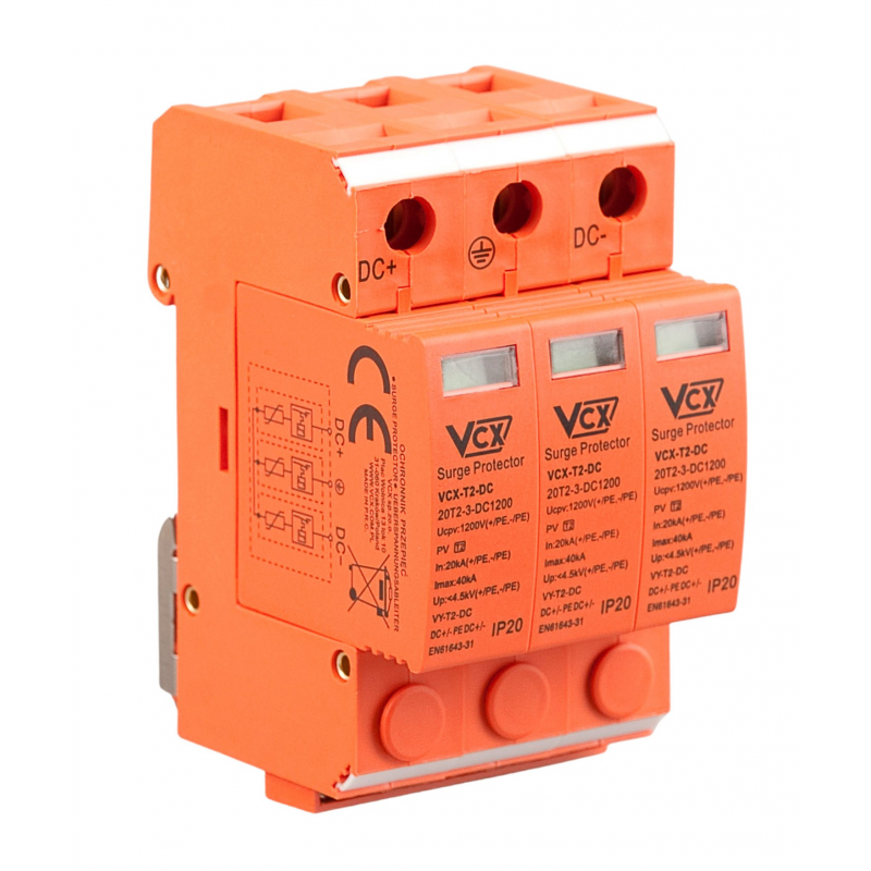Ochronnik przepięć fotowoltaiczny DC klasy T2 (C) 3P 1200 V DC