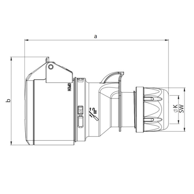 Wymiary produktudługość (a) - 161 mm, maksymalna szerokość (b) - 94 mm, średnica przewodu (K) - Ø11,5-20 mm, wymiar zewnętrzny dławika (SW) - 50 mm
