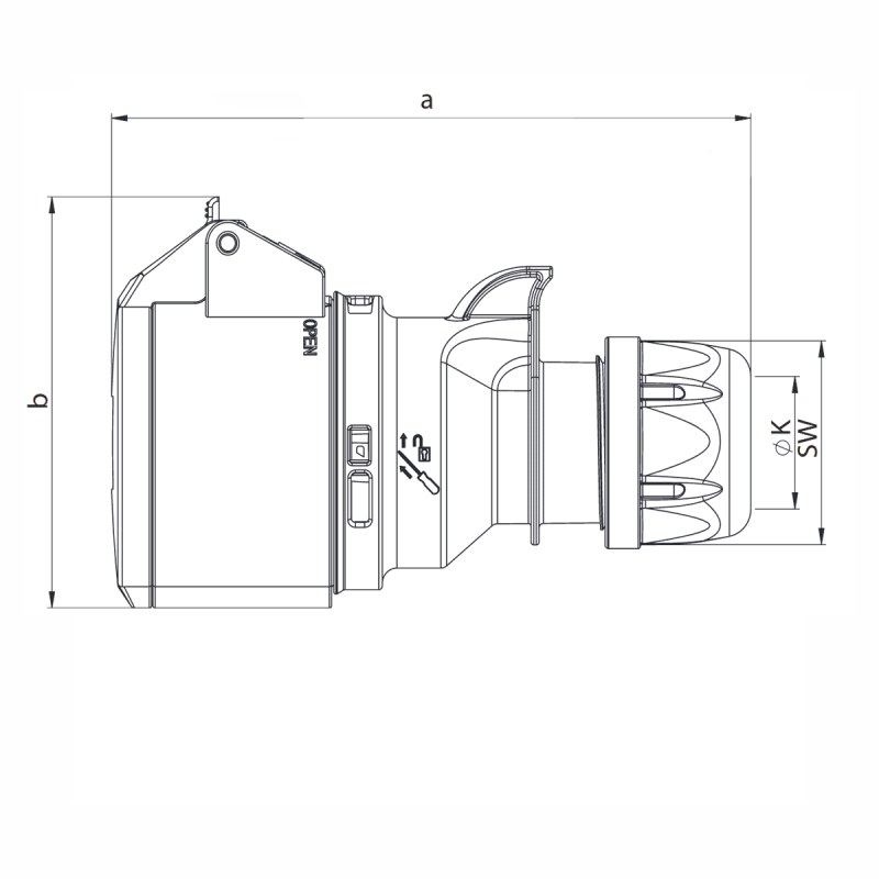 Wymiary produktudługość (a) - 161 mm, długość do przyłączy (b) - 94 mm, średnica przewodu (K) - Ø11,5-20 mm, wymiar zewnętrzny dławika (SW) - 50 mm,