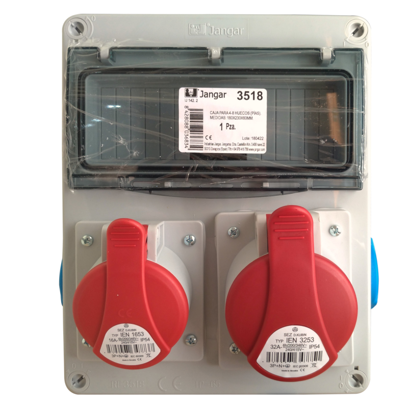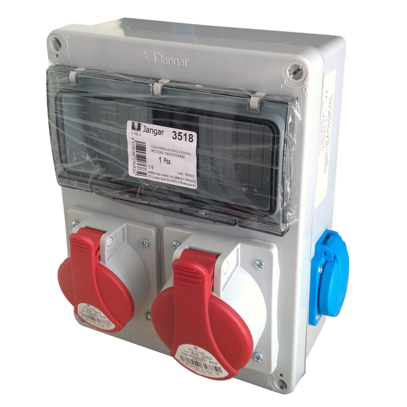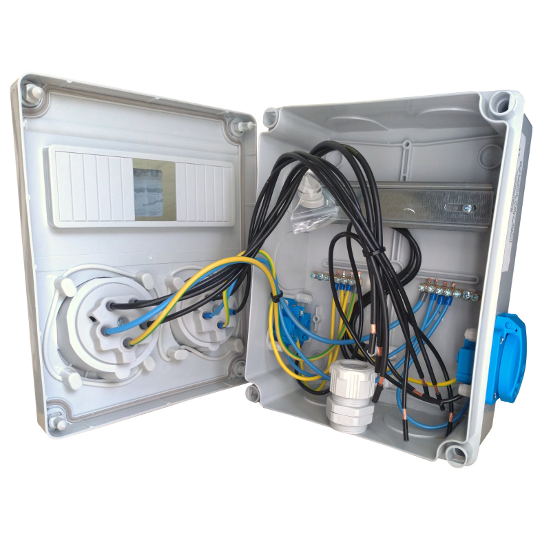 Rozdzielnice wykonane są z wysokiej jakości tworzywa sztucznego. Przystosowane są do użytkowania zarówno wewnątrz pomieszczeń jak i na zewnątrz - produkt posiada klasę pyłoszczelności/wodoodporności IP65. Skrzynka posiada wyjścia gniazd: siłowego (3P+N+Z) i zwykłego (2x2P+Z). Szynę TH35 z miejscem na 8 modułów 18mm, zabezpieczoną klapką dymną.
