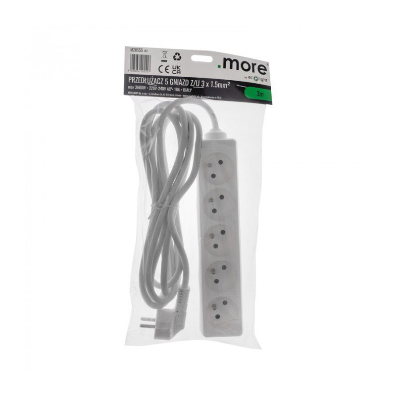 • Path: > > > > ECOLIGHT Przedłużacz 5-gniazdowy z uziemieniem 16A 230 V~ biały 3m