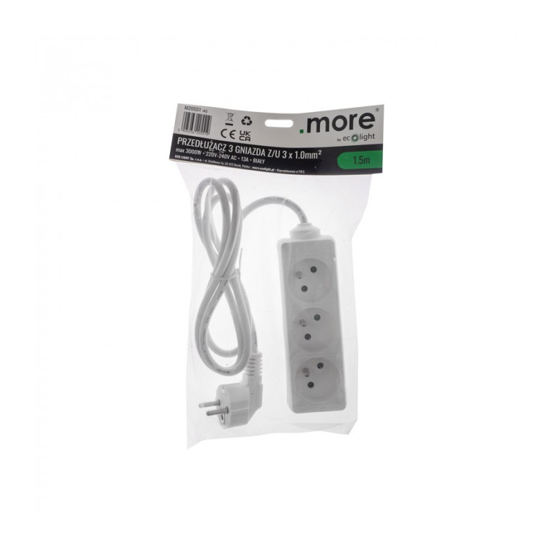 • Path: > > > > ECOLIGHT Przedłużacz 3-gniazdowy z uziemieniem 13A 230V~ biały 1,5m M20551