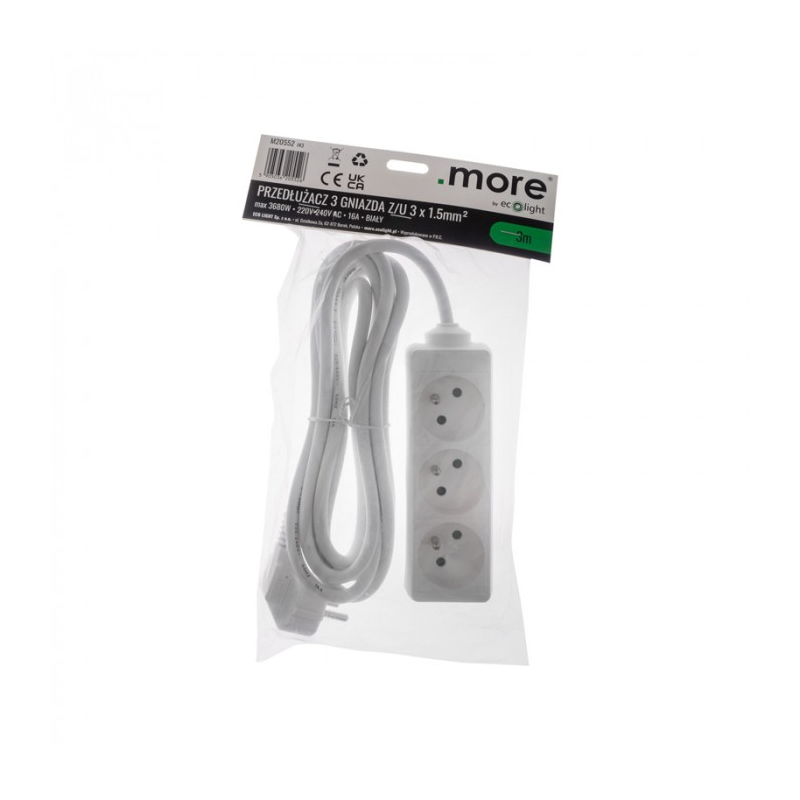 ECOLIGHT Przedłużacz 3-gniazdowy z uziemieniem 16A 230V~ biały 3m