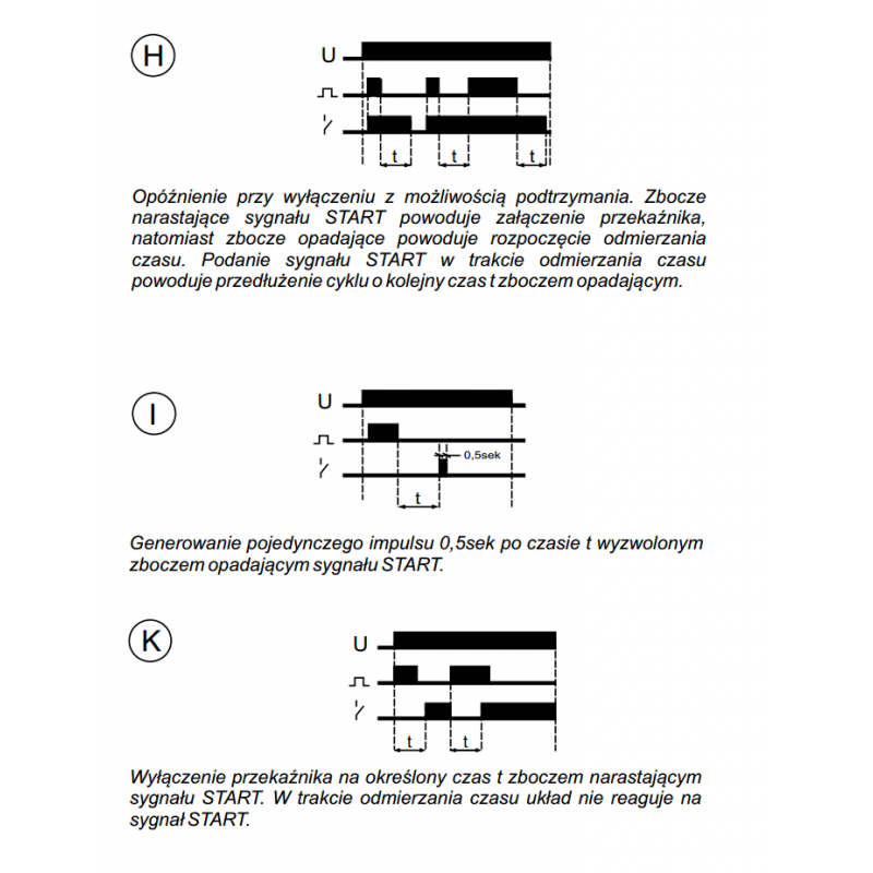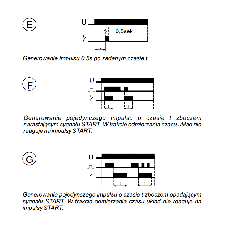 - dla funkcji F, G, H, I powrót przekaźnika do stanu początkowego i oczekiwanie na sygnał START.