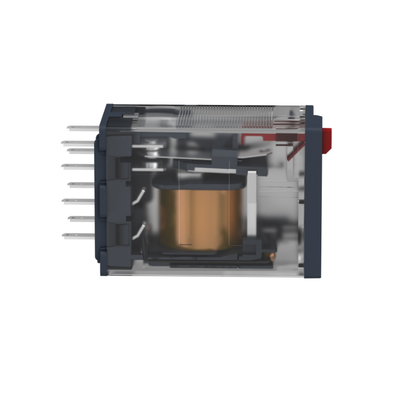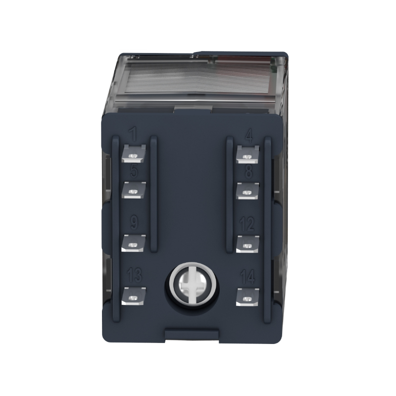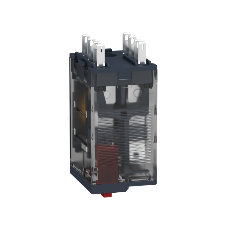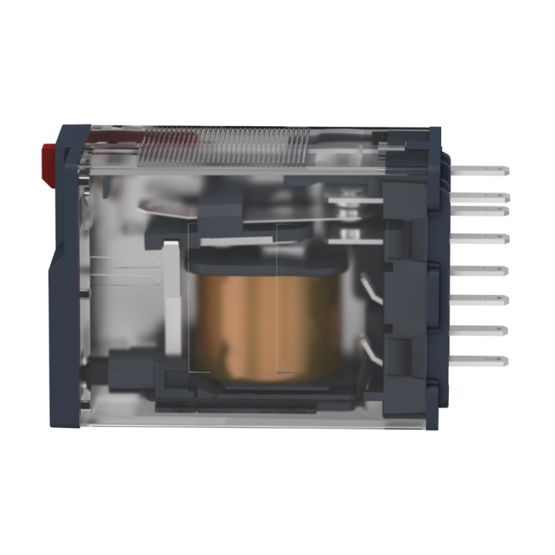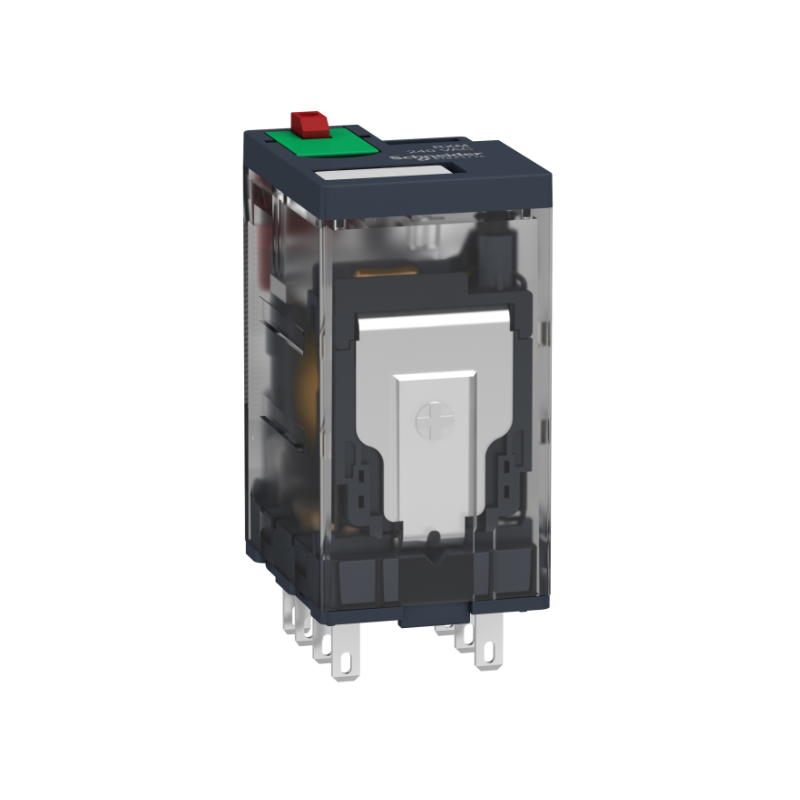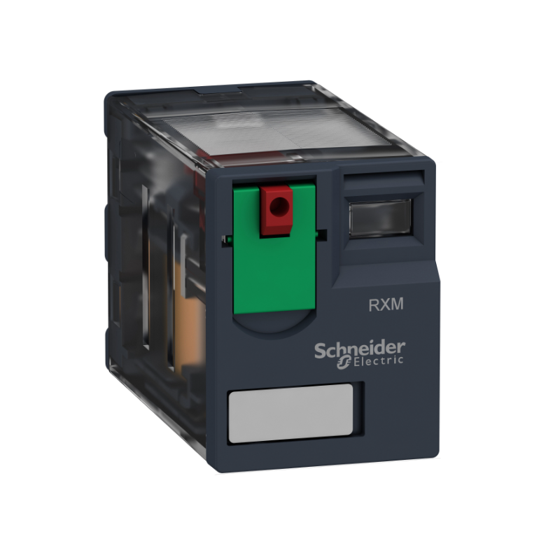 Przekaźniki miniaturowe RXM są częścią przekaźników elektromechanicznych Harmony. Jest to przekaźnik wtykowy do montażu na gniazdo RXZE. Jest to przekaźnik 4 C/O o prądzie znamionowym 6A, napięciu obwodu sterowania 230 V AC 50/60 Hz. Oferuje również jednostopniowy, blokowany przycisk testowy i mechaniczny wskaźnik stanu styku. Przycisk testowy włącza się chwilowo poprzez wciśnięcie czerwonego przycisku na froncie i blokuje poprzez odwrócenie zielonej części do góry. Wskaźnik mechaniczny znajduje się obok przycisku testowego, gdzie pomarańczowa flaga wskazuje stan styku przekaźnika. Możliwość pracy w systemach automatyki z logiką przewodową, uzupełniających funkcje przemysłowych sterowników programowalnych (PLC). Jest to ekologiczny produkt premium, spełniający międzynarodowe normy i certyfikaty, takie jak IEC, CE, UL, CSA, EAC, Lloyd's, RoHS i REACH. Przekaźnik RXM powinien być stosowany z gniazdem RXZE (zacisk śrubowy, złącze śrubowe, zacisk push-in). W celu ochrony przed wibracjami do gniazda można dodać plastikowy/metalowy zacisk.