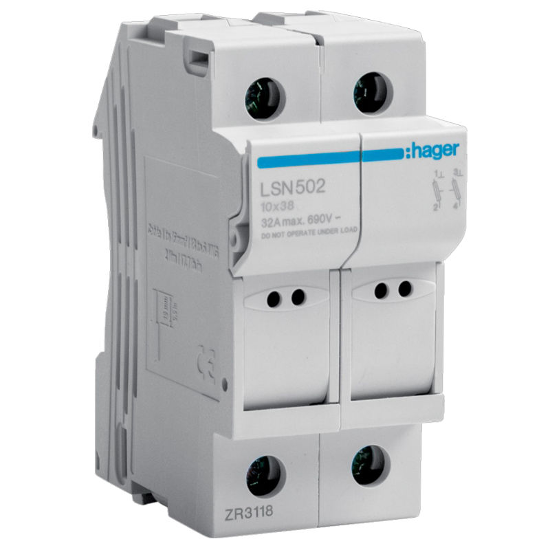 • Path: > > > HAGER Modułowa podstawa bezpiecznikowa 2P 10x38mm 32A 690V~ LSN502