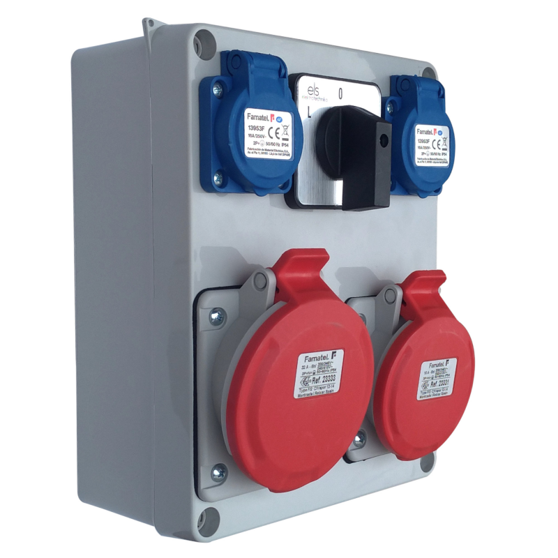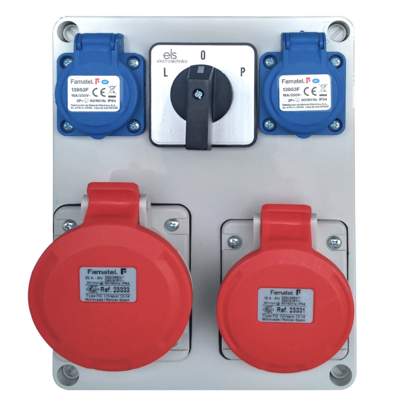 Rozdzielnice wykonane są z wysokiej jakości tworzywa sztucznego. Przystosowane są do użytkowania zarówno wewnątrz pomieszczeń jak i na zewnątrz - produkt posiada klasę pyłoszczelności/wodoodporności IP54. Skrzynka posiada wyjścia gniazd: zwykłego (2x2P+Z) i siłowego (2x3P+N+Z 16/32A). Rozdzielnica posiada wyłącznik główny/przełącznik do zmiany kierunków obrotu silnika L-0-P (els elektrotechnika).
