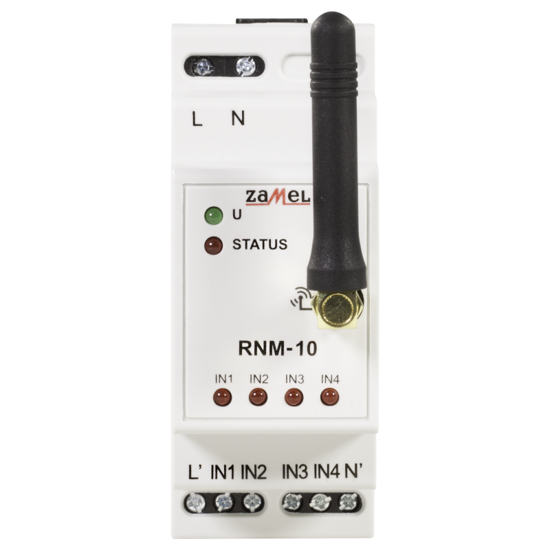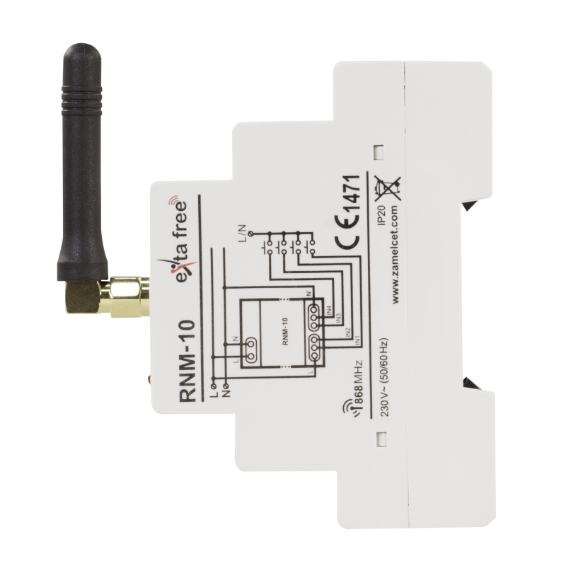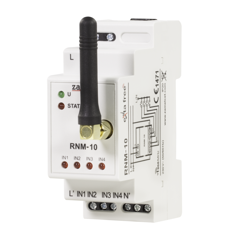 Radiowy nadajnik modułowy RNM-10 jest urządzeniem współpracującym z odbiornikami bezprzewodowego systemu sterowania EXTA FREE, montowanym na szynę TH35. Posiada 4 niezależne wejścia wyzwalane napięciem 230V. Do zacisków wyzwalania RNM-10 podłączone mogą być łączniki instalacyjne, urządzenia przewodowego systemu automatyki budynkowej EXTA lub inne dowolne urządzenia przekaźnikowe (programatory czasowe, czujniki ruchu, przekaźniki programowalne, itp). Zastosowanie RNM-10 pozwala na integrację wyżej wymienionych urządzeń z odbiornikami systemu EXTA FREE i ich bezprzewodowe sterowanie.