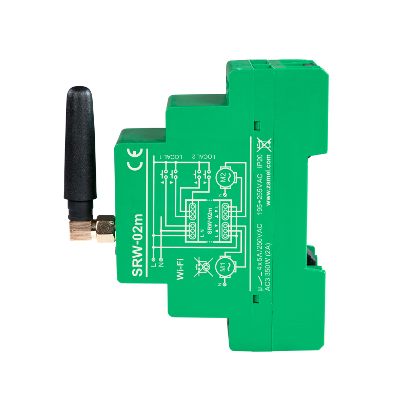 Sterownik rolet SRW-02M pozwala na sterowanie dwiema roletami za pomocą przycisków roletowych oraz aplikacji. Modułowa obudowa pozwala na montaż urządzenia w rozdzielnicy. Możliwe jest też jej zdalne zamknięcie lub otworzenie. Dzięki zapisanym w chmurze harmonogramom możliwe jest automatyczne sterowanie roletami o określonej godzinie w wybranym dniu tygodnia.