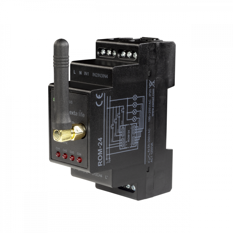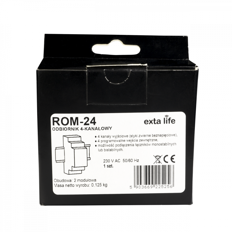 zapewnia, iż w aplikacji mobilnej zawsze wskazywany jest aktualny stan każdego kanału odbiornika. Taki sposób komunikacji umożliwia także zmianę wybranych parametrów odbiornika oraz zdalne dopisywanie nadajników (bez dostępu do odbiornika). Zaimplementowany algorytm kodowania ramek zapewnia bezpieczeństwo sterowania. ROM-24 poza kontrolerem może być równolegle sterowany z poziomu nadajników systemu EXTA LIFE. Do odbiornika można wpisać większą liczbę nadajników co daje możliwość niezależnego sterowania z kilku miejsc. Dodatkowe konfigurowalne wejścia