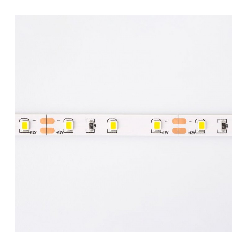 Jednokolorowa taśma LED o długości 5 m, zawierająca 300 żarówek SMD 2835. Taśmę można ciąć co 2,5 cm. Ciepła barwa światła. Niewodoodporna.