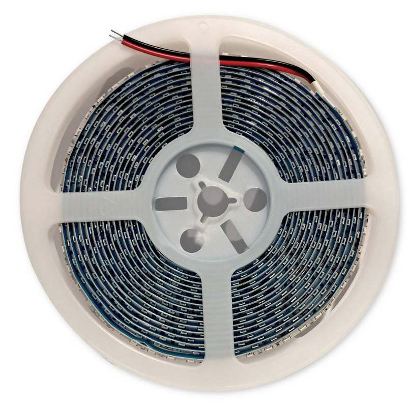 Jednokolorowa taśma LED o długości 5 m, zawierająca 300 żarówek. Taśmę można ciąć co 5 cm. Niewodoodporna.