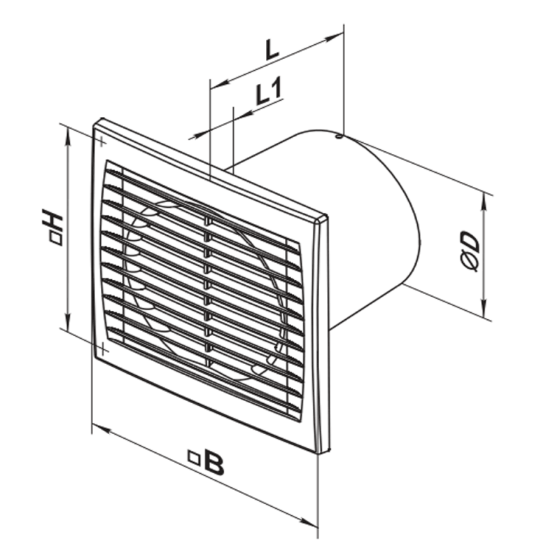 Wentylator ścienno-sufitowy w wersji z wyłącznikiem czasowym i czujnikiem wilgotności o wydajności 148 m³/h. Wentylator montuje się do otworu kanału wentylacyjnego Ø=125 mm.