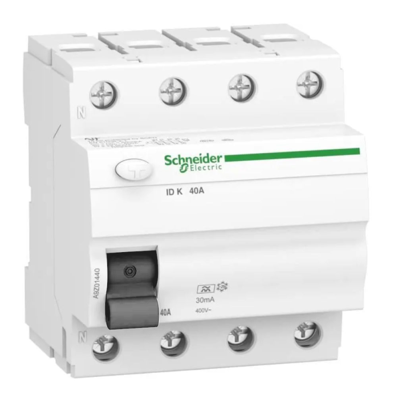 Wyłącznik różnicowoprądowy IDK-40-4-30-A 40A 4-biegunowy 30mA typ A ,o numerze A9Z01440. Wyłącznik różnicowoprądowy dopasowany do potrzeb budownictwa mieszkaniowego i podobnego. Podwójne zaciski od dołu (szyna + przewód). Karbowane zaciski zwiększające pewność podłączenia.Możliwość sprawdzania poprawności działa nia przyciskiem kontrolnym "T" jedynie raz do roku, przez pierwsze 7 lat użytkowania. Tor N umieszony po lewej stronie, ułatwia oszynowanie z wyłącznikami nadprądowymi