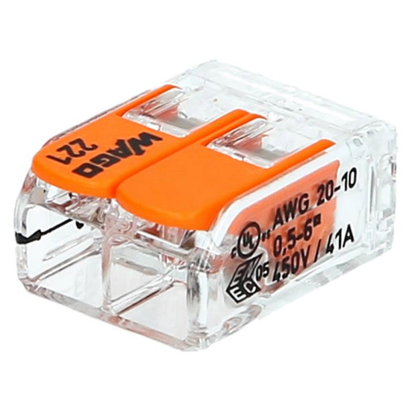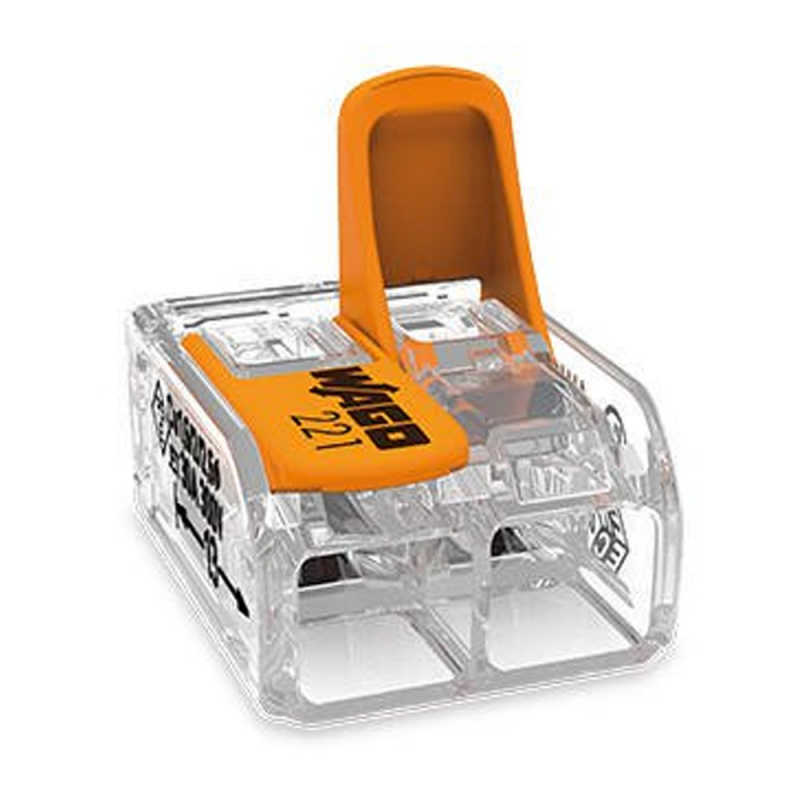 Szybkozłączki WAGO serii 221 to ulepszona wersja popularnych złączek tej firmy. Dzięki nowym, mniejszym wymiarom zapewnia oszczędnośc miejsca o 40%. Złączka jest uniwersalna - obsługuje każdy rodzaj przewodu (jednodrutowy, wielodrutowy, linkę).