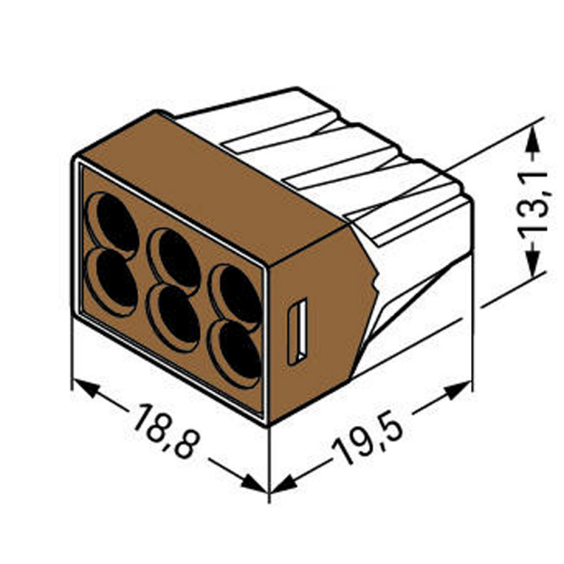 Złączka do puszek instalacyjnych jest klasycznym przedstawicielem technologii umożliwiającej montaż przewodów przez wetknięcie. Na miedzianej szynie prądowej (pokrytej cyną), zajmującej niewiele miejsca, zamocowana jest lamelowana sprężyna ze stali chromoniklowej. Konstrukcja ta zapewnia osobny zacisk dla każdego podłączanego przewodu. Dzięki temu, że obudowa izolacyjna, otaczająca miejsce styku, jest wyposażona w lejkowate otwory na przewód, wykluczone jest przypadkowe podłączenie kilku przewodów do jednego zacisku.