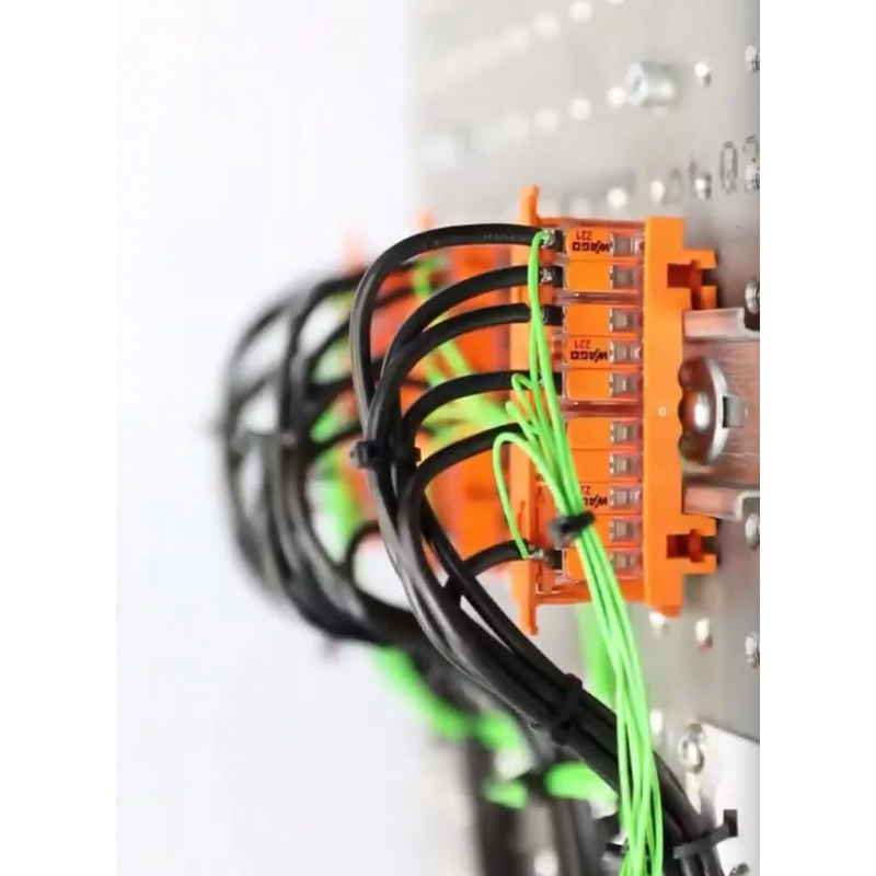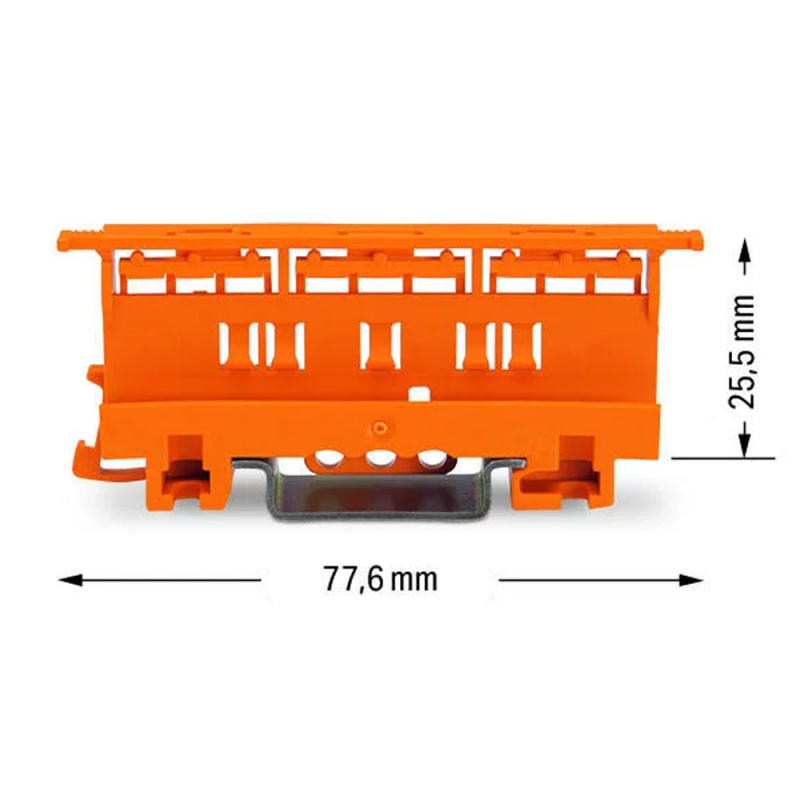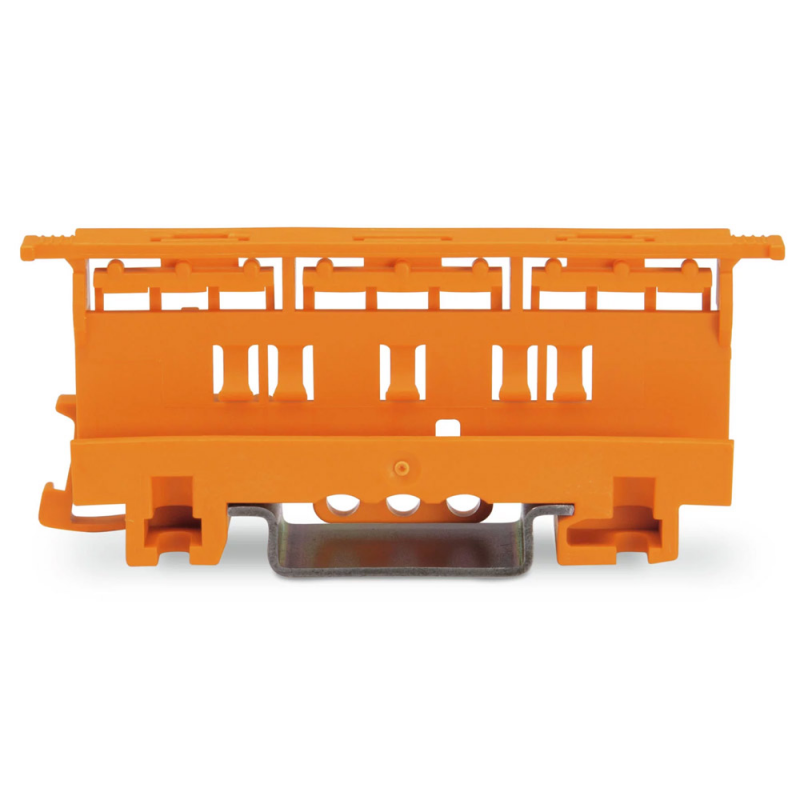 Adapter montażowy 221-500 służy do instalacji szybkozłączek WAGO serii 221-4xx na szynę DIN/TH35. Możliwa jest dowolna konfiguracja złączek 2x/3x/5x w jedynym panelu pod warunkiem nie przekroczenia sumy 10 otworów. Złączki serii 221-6xx NIE pasują do tego adaptera.