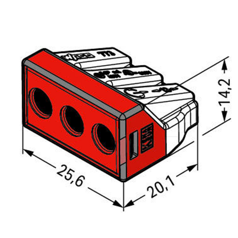 Zacisk PUSH WIRE®, w tej szybkozłączce, służy do podłączania przewodów jednodrutowych i wielodrutowych o przekroju od 2,5 mm² do 6 mm². Rozwiązanie to wykorzystuje sztywność przewodów do pokonania oporu sprężyny zaciskowej.