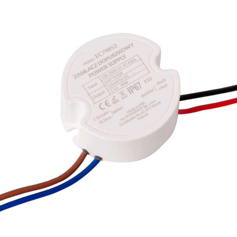 Wysokowydajny, charakteryzujący się stabilną pracą zasilacz do produktów LED o napięciu 12V pasujący do standardowej puszki fi60.